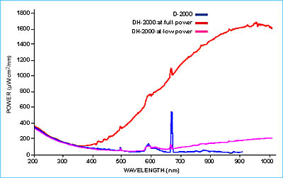 215-400 nm (standard bulb); 190-400 nm (deep-UV bulb) |