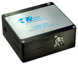 獨(dú)立使用的光源 USB-DT型光源是一個(gè)獨(dú)立的光源,可與海洋光學(xué)公司的任意一款光譜儀相連,它帶有一個(gè)15針的接口,用來連接光譜儀。在右側(cè)的吸光測(cè)量裝置中,USB-DT為一個(gè)比色皿提供光源。但是,在USB-DT型光源未與光譜儀相連的情況下,用戶不能通過軟件控制其功能。