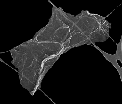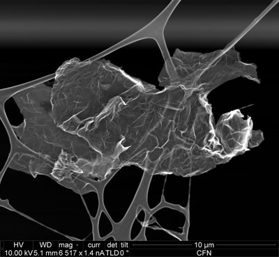 Dry black powder Specifications: Specific surface area-about 400 m2/g Color: Black Solid content: 98% Average flake thickness:1 monolayer Average Particle (lateral) size: ~3-10 microns. Flakes have multiple openings and holes Improved solubility in organic solvents 拉曼光譜圖 / SEM圖像1 / SEM圖像2 |